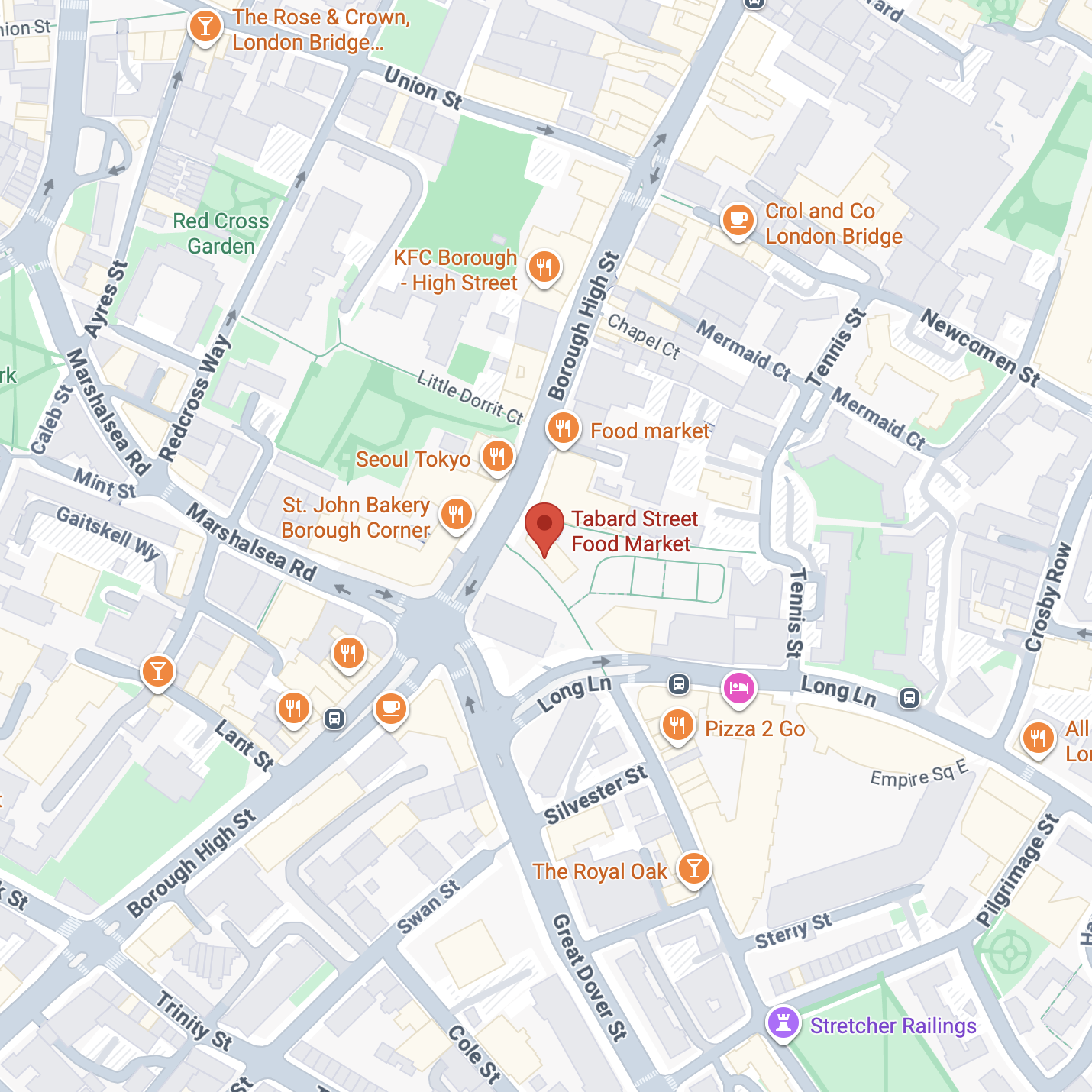 Located in Borough, SE1, is the diverse Tabard Street Food Market.